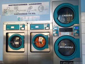 Natürlich waren zwei von zwei Waschmaschinen belegt, als ich den Korb vom Fahrrad runter gewuchtet und in den Salon geschleppt hatte. Wie gut, dass die schnellen Programme nur 30 Minuten laufen, dennoch war es unnütze Wartezeit. Die Dame, die die erste Maschine belegt hatte, kam irgendwann rein und befüllte die Maschine anschließend erneut. Na super.