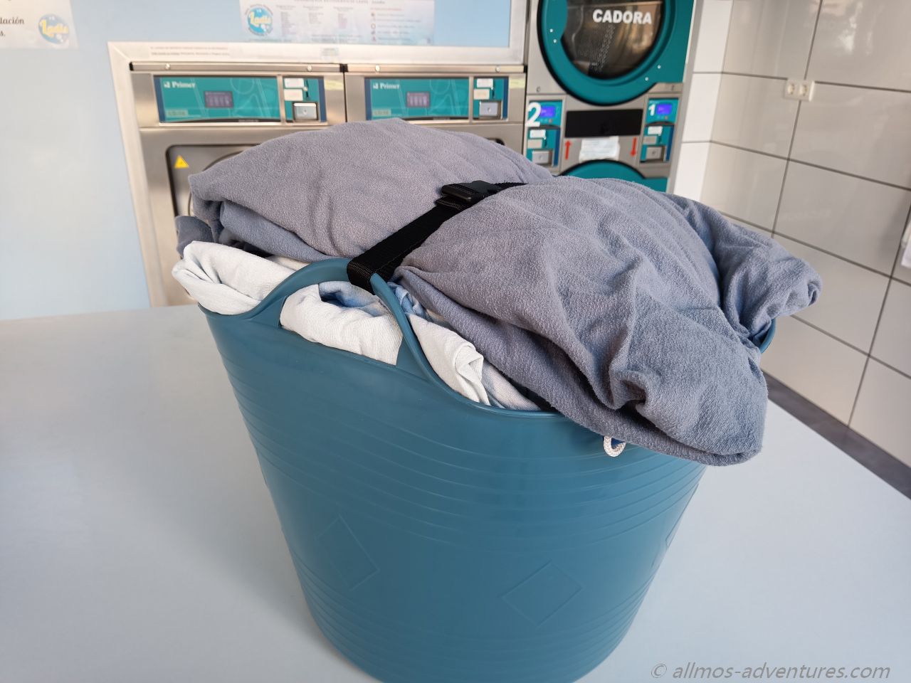 Es war erst kurz nach 14 Uhr, so dass ich entschied heute noch zum Waschsalon zu fahren. Schnell die Wäsche noch sortiert und die Betten abgezogen. Bis der riesige Korb dann mit zwei Spanngurten auf Allmos Gepäckträger geschnallt war vergingen noch ein paar Minuten und dann konnte ich losradeln.