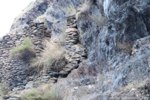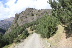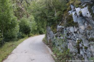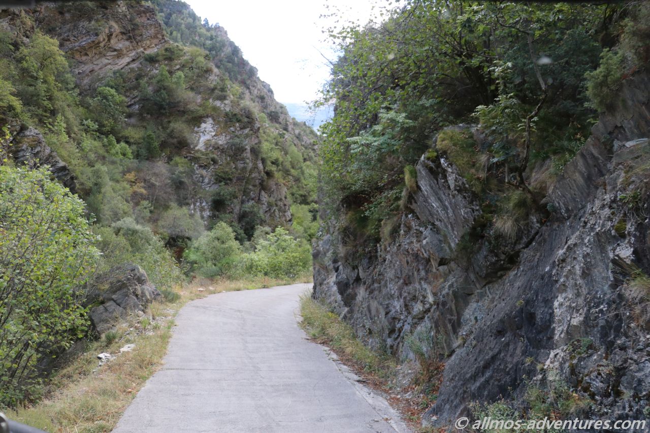 Ab der Brücke war der Weg hinunter bis Alins zwar geteert, dafür aber sehr schmal. Die meisten Leitplanken waren mit Holzlatten verkleidet. Holz schmerzt halt weniger am Lack als das blanke Metall der Leitplanken. Ausweichmöglichkeiten gab es kaum. Der Weg führte an sehr vielen Felsen vorbei und war landschaftlich sehr interessant. Auch wenn Frank lieber Piste anstatt auf Teer gefahren wäre. Ein paar Mal kamen uns tatsächlich PKWs und auch Motorräder entgegen. Zum Glück immer an Stellen, wo ein Ausweichen möglich war. Da hatten wir wirklich Glück.