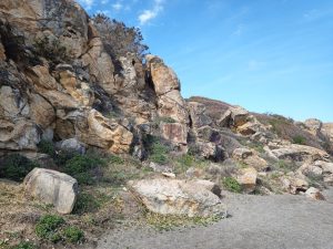 Emma ging zunächst auf Entdeckungsreise auf den Felsen. Natürlich nicht ganz freiwillig, Frank hatte sie dort hin gesetzt um sie zum Klettern zu animieren. Anschließend machte sie es sich mit uns auf der Picknickdecke gemütlich.