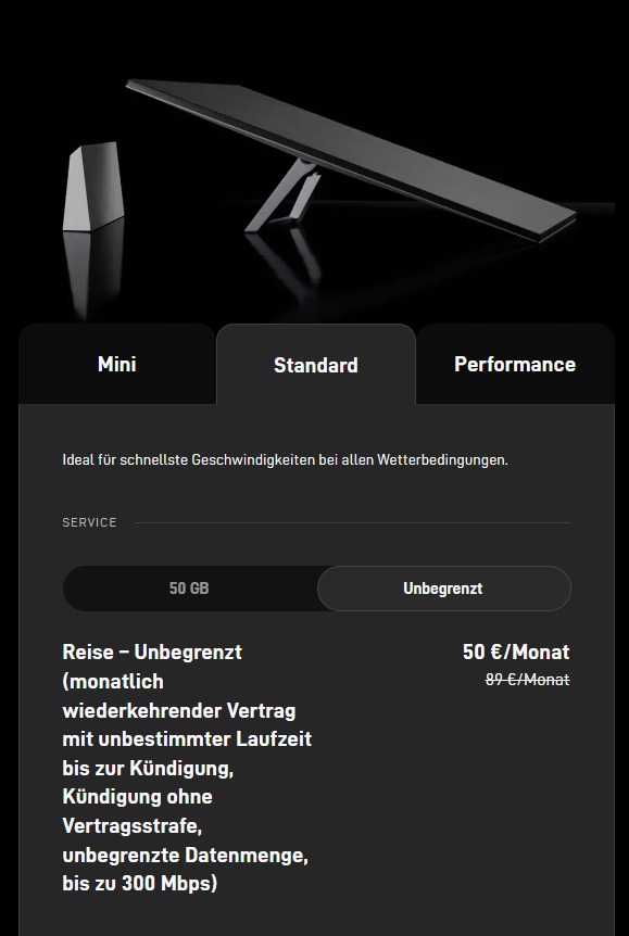 50 € statt 89 €/Monat für den Tarif „Reise Unbegrenzt“