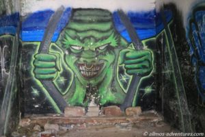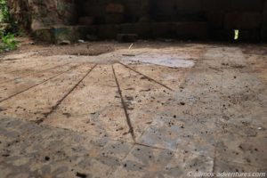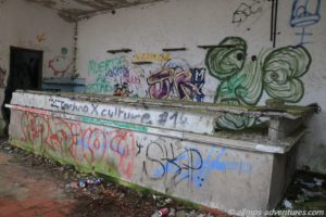 Die Gebäude sind, wenn wundert’s, dem Zerfall gewidmet. Teilweise sind die Dächer eingestürzt. Inzwischen wurden viele der Zugänge zugemauert, so dass man nur noch in das größere Gebäude über ein Fenster hineingelangen kann. Schade, dass durch den Vandalismus so ein Ort seinen eigentlichen Charme verliert. Sehr begeistert waren wir von den alten Bodenfliesen, die sich in dem Gebäude befanden.