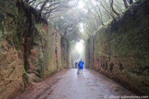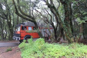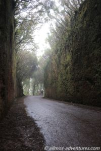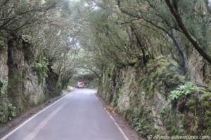 Je weiter wir in das Gebirge hinein fuhren, desto schmaler wurden die Straßen. Dies könnte aber auch daran gelegen haben, dass wir uns über einen der Nebenwege näherten. Das gesamte Anaga-Gebirge besteht aus Wald, Wald und noch mehr Wald. Entsprechend dunkel war es teilweise. Der Verkehr hielt sich noch sehr in Grenzen. Vermutlich saßen die Leute noch am Frühstückstisch.