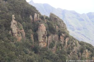 Leider fing es etwas an zu tröpfeln. Das schöne Wetter, dass wir noch am Morgen an der Küste hatten, war auf über 800 Metern nicht mehr so ganz vorhanden. Also gingen wir wieder (immer schön bergauf, die Steigung war moderat) zurück zu Allmo.