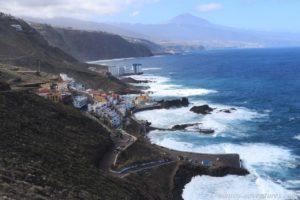 Tatsächlich wählte Karten-Gockel von sich aus den einfacher zu fahrenden Weg über den Ort Juan Fernandez anstatt den Weg über die Serpentinen zu nehmen. So viel Verstand hatten wir dem Gockel gar nicht zugetraut. Bereits von dem Mirador del Pris aus sahen wir auf den Ort und den dahinter befindlichen Küstenstreifen.