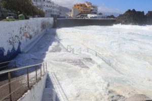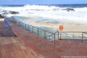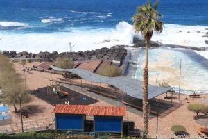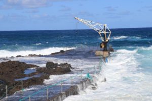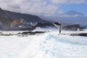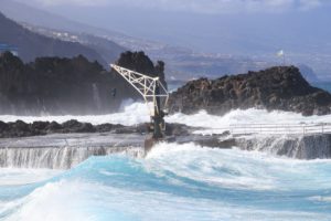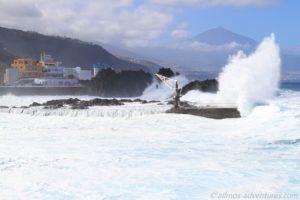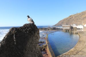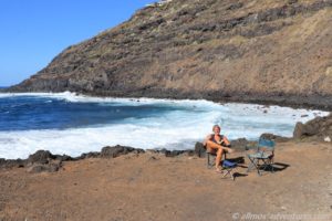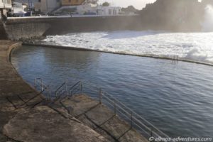 Wir beobachteten weiter die Wellen, die jedoch im Laufe des Nachmittags an Kraft nachließen. Bei Ebbe hatte später sogar der Naturpool von El Pris eine spiegelglatte Oberfläche. Das vor ein paar Stunden das Wasser sogar die Treppen hinauflief, war nun unvorstellbar.