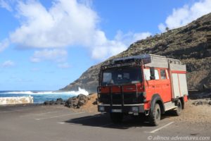 Auch der Parkplatz wurde am äußeren Rand von der Gischt mit Salzwasser bedeckt, so dass wir uns einen Platz aussuchten, an dem Allmo geschützt war. Ob wir über Nacht in El Pris bleiben würden, wussten wir noch nicht.