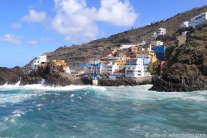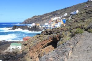 Der Weg führte uns an der Playa de El Sargo vorbei, von wo aus es dann ein Stückchen bergauf ging. Wir blickten zurück auf die bunten Häuser von El Pris und den kleinen Hafen.