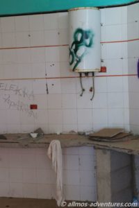 Das Gebäude war durch Vandalismus teilweise zerstört worden. Reste einer Küchenzeile und von Sanitäranlagen waren noch vorhanden. Es gab auch einen nicht mehr überdachten Grillbereich mit Sitzmöglichkeiten und Tischen. Auch wenn es den Campingplatz in seiner Form nicht mehr gibt, so ist das Gelände dennoch bewohnt.