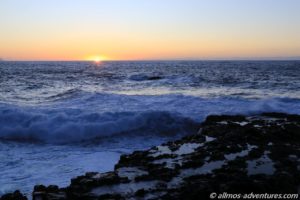 Emmas Zufriedenheit mit dem Tütchen-Futter von Mercadona hielt nicht sehr lange an. Inzwischen frisst sie es mit weniger Begeisterung und ist nachts wieder entsprechend launisch. Hinzu kam, dass wir seit langem im Dachzelt schliefen und der Wind doch ab und an mal daran rüttelte. Auch unsere beiden Camper-Nachbarn, die erst bei Dunkelheit anrückten, waren untereinander sehr gesprächig. Bei dem Versuch einzuschlafen, kam mir das Meer auch sehr laut vor, was bei den Wellen wenig verwunderlich war. Doch irgendwann nahm ich dieses Geräusch nicht mehr wahr.