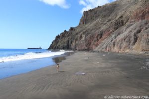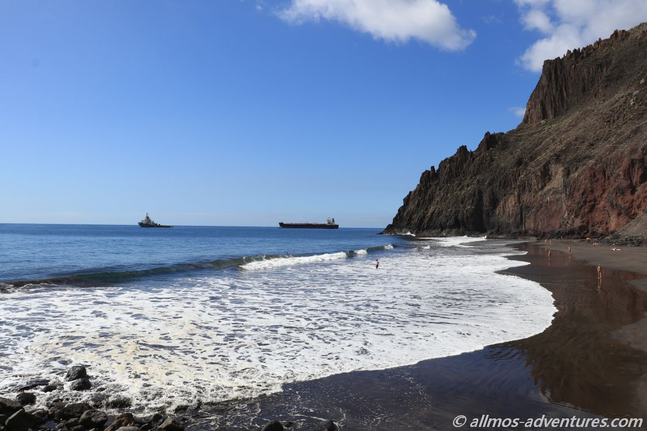 Wir waren uns nicht sicher, wo wir heute unser Nachtlager aufschlagen wollten. Ob an dem sehr langen Sandstrand von San Andres, der Playa de las Teresitas, wo es vermutlich eher hektisch und unruhig zugeht, oder an der vielleicht ruhigeren Playa de las Gaviotas.