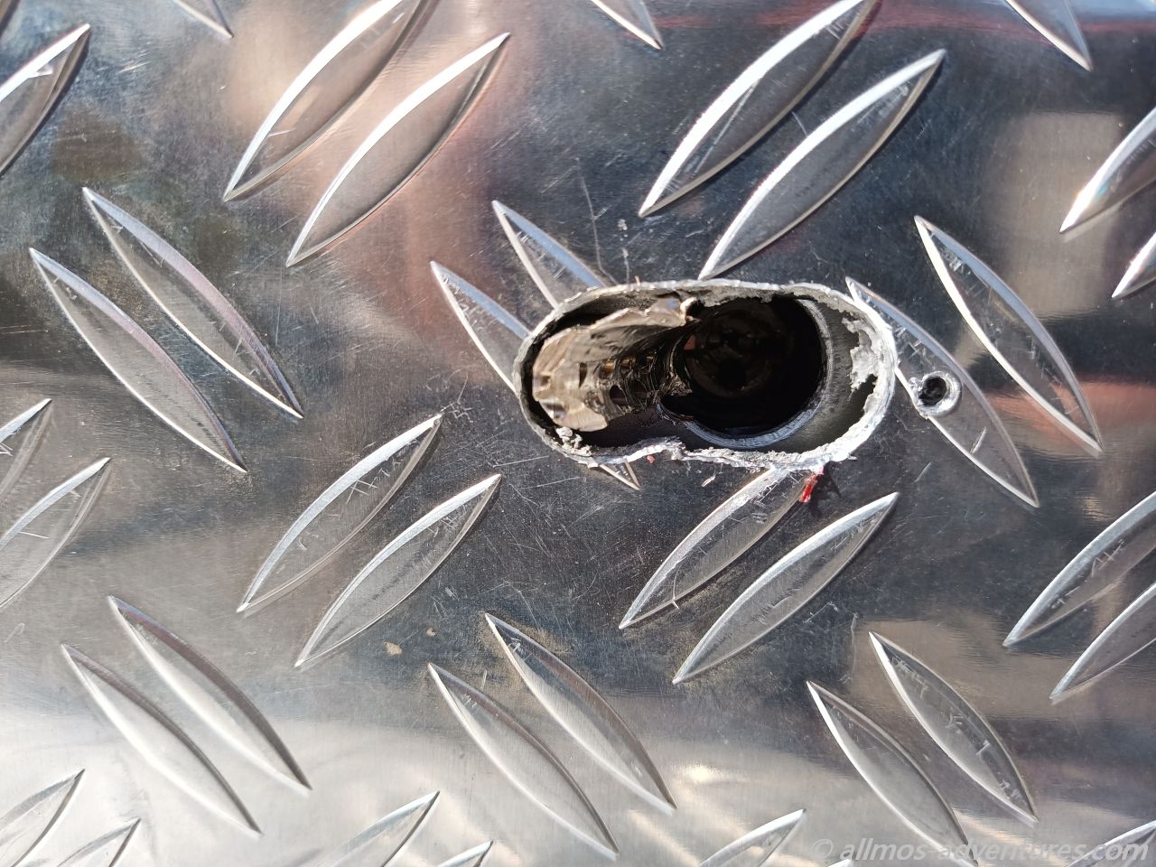 Unglücklicherweise rappelte sich innerhalb der ersten Wochen unserer Reise eine Schraube in dem Schloss unserer „Haustür“ los, so dass wir diese nicht mehr mit dem Schlüssel aufschließen konnten. Die elektrische Lösung (wie gut, dass es sie gibt) funktionierte weiterhin einwandfrei.