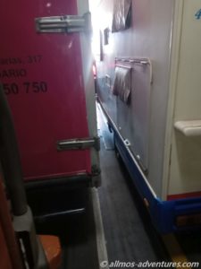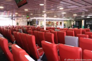 Wir gingen über das Treppenhaus nach oben und suchten uns einen Sitzplatz im hinteren Bereich. Die Klimaanlage pustete kalte Luft, so dass wir einen weniger kalten Platz auswählten.