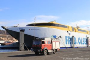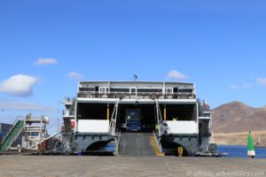 Zuerst durften die kleinen Fahrzeuge die Fähre verlassen, dann die mittleren und mit zum Schluss waren auch wir an der Reihe. Und dann rollten wir gegen 14 Uhr unsere ersten Meter auf dem Boden von Gran Canaria.